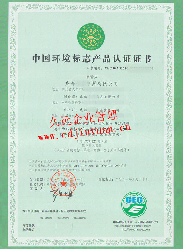 中國環保產品認證證書