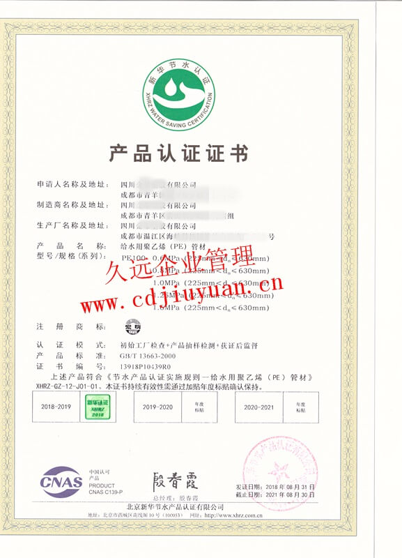 節水產品認證證書